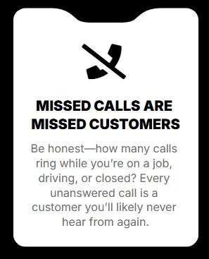Be honest—how many calls ring while you’re on a job, driving, or closed? Every unanswered call is a customer you’ll likely never hear from again.